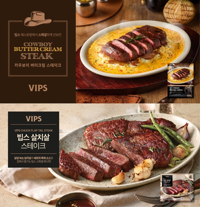 먼저 ‘카우보이 버터크림 스테이크’는 매장에서 큰 사랑을 받아온 메뉴를 간편식 형태로 구현한 제품이다. 미국산 살치살을 두툼하게 사용해 육즙과 부드러운 식감을 살렸으며, 최근 SNS에서 인기를 얻고 있는 ‘카우보이 버터크림’ 소스를 더해 풍미를 강화했다. 고소한 버터에 마늘, 양파, 각종 향신료, 휘핑 크림을 더한 크림 소스로, 빕스만의 레시피로 재해석해 깊은 맛을 구현했다.