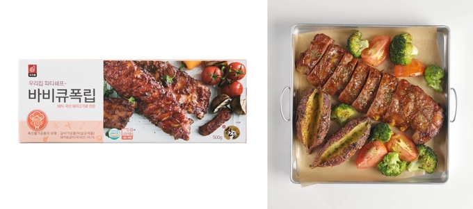 레시피는 구운 고구마에 칼집을 낸 뒤 버터,꿀,모차렐라치즈를 올려 허니 버터 고구마를 만들고 물에 담가해동한 바비큐 폭립과 토마토·브로콜리를 오븐에 함께 굽고, 접시에 폭립, 고구마, 구운 채소를 담고 파슬리를 뿌리면 다이닝 레스토랑이 부럽지 않을 정도의 완성도를 자랑하는 폭립 플래터가 완성된다.