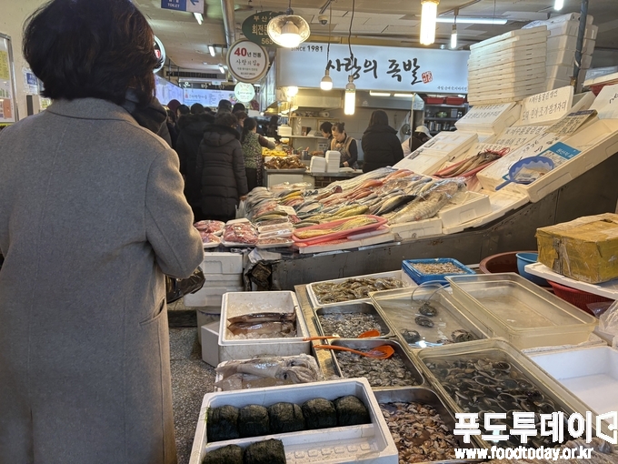 특히, 떡집과 전 전문점, 굴비, 반찬과 국 종류를 판매하는 매장은 발 디딜 틈이 없이 길게 줄을 서 있었다. 가족과 함께 마지막 날을 보내고 새해를 맞기 위해 카운트다운을 하는 홈파티 메뉴를 고르는 소비자들도 눈에 띄었다.