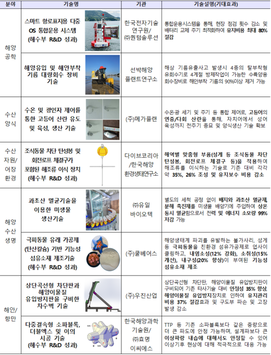 [푸드투데이 = 노태영기자] 해양수산부(이하 해수부)는 2025년 하반기에 총 8개의 해양수산 신기술을 인증하고, 총 11건의 신기술 적용제품을 확인하였다고 5일 밝혔다.