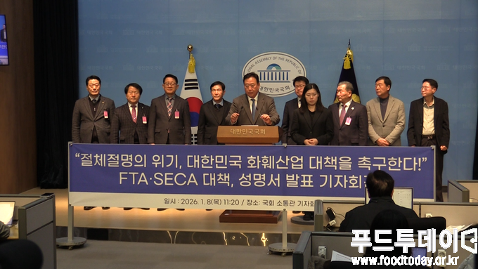 [푸드투데이 = 노태영기자] 8일 국회 농림축산식품해양수산위원회 어기구 위원장(더불어민주당, 충남당진시)와 임호선 의원(더불어민주당, 충북 증평군진천군음성군)과 한국화훼자조금협의회, 한국화훼협회, 한국난재배자협회는 국회에서 국내 화훼산업 대책을 촉구하는 기자회견을 열었다.