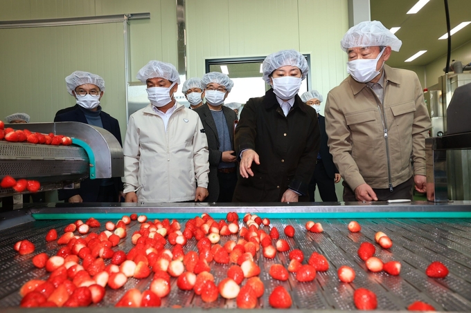 [푸드투데이 = 노태영기자] 농림축산식품부(이하 농식품부)는 22일 송미령 장관이 충남 논산시를 방문해 겨울철 대표 시설작물인 딸기의 생육 상황과 출하 동향을 점검하고, 농업인과 유통 관계자를 격려하며 안정적인 출하를 위한 철저한 작물관리와 재해 대비를 당부했다고 밝혔다.