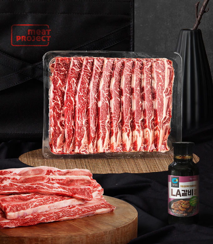 먼저, 명절 때마다 조기 완판을 기록하며 미트프로젝트의 대표 스테디셀러로 자리매김한 ‘LA 꽃갈비세트(1.8㎏)’를 선보인다. 갈비 부위 중 마블링이 가장 풍부해 부드러운 육질과 진한 육즙이 특징인 6·7·8번 꽃갈비만 선별했고, 미국산 원육 중에서도 최상위 등급만 사용했다. 여기에 국산 과일을 넣어 만든 ‘청정원 LA 갈비양념’을 함께 증정해 집에서도 간편하게 고품격 갈비 요리를 즐길 수 있도록 했다.