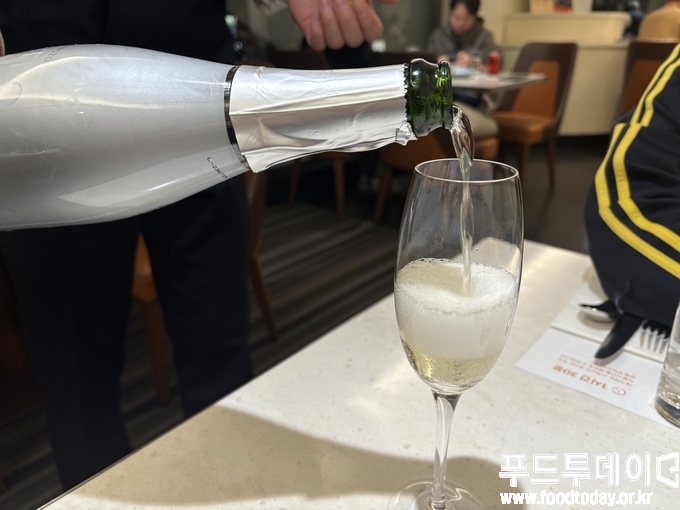 다른 일행들의 눈을 피해 본관 와인샵에서 사온 스파클링과 지난번에도 주문했던 킹크랩 스파게티와 하프앤하프 피자를 실수령액 억대 연봉자가 된 기분으로 호기롭게 시키며 주위를 둘러봅니다.