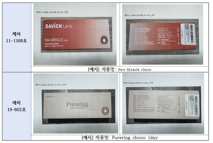 회수 대상은 ‘DAVICH LENS 3DAY COLOR’, ‘DAVICH LENS 1MONTH COLOR’, ‘DAVICH LENS 1DAY COLOR’, ‘1THE LENS’ 등 총 16개 모델이다. 해당 제품들은 모두 기존에 의료기기 인증(제허11-1168호, 제허19-602호)을 받은 품목이지만 일부 물량을 외부 제조원에 위탁 생산하면서도 변경 인증을 받지 않은 사실이 확인됐다.