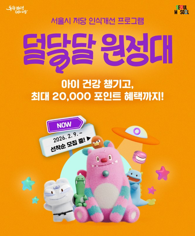 시는 어린이가 일상 속에서 당류 섭취를 자연스럽게 점검하고 건강한 선택을 익힐 수 있도록 돕는 덜달달 원정대에 참여할 초등학생 어린이와 학부모 2만 명을 9일부터 선착순 모집한다고 밝혔다.