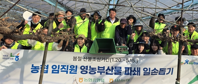 이날 일손돕기에는 농촌지원부와 경기본부, 서신농협 직원 20여 명이 참여해 포도 넝쿨 등 영농부산물을 수거하고 파쇄 작업을 지원하는 등 농가의 작업 부담을 덜어주는 데 힘을 보탰다.