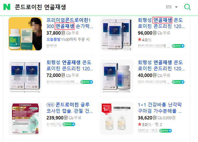 본지가 주요 포털 검색과 블로그, SNS 등을 확인한 결과, ‘연골 재생’, ‘퇴행성 관절염 개선’, ‘연골 복원’ 등 과장 표현이 반복적으로 노출되며 소비자 오인을 유발할 소지가 있는 것으로 나타났다.