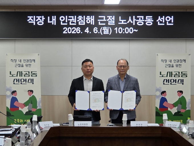 노사 공동 선언문은 ▲모든 구성원의 인권 존중 및 안전한 근무환경 조성 ▲성별·직급·신체조건 등을 이유로 한 차별 금지 ▲인권침해 발생 시 공정한 조사 및 무관용 원칙 적용 ▲상호 존중과 배려 기반의 조직문화 확립 ▲안전하고 행복한 일터 조성 노력 등의 핵심 실천사항을 담았다.