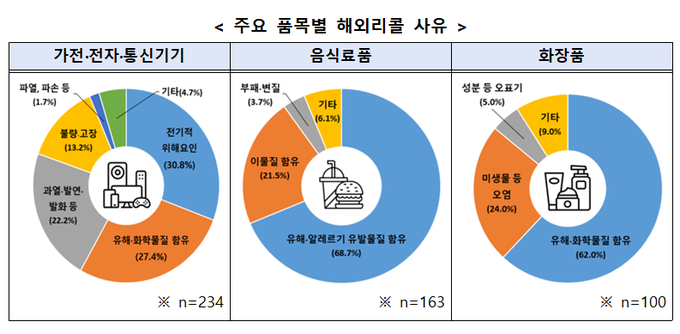 [푸드투데이 = 황인선기자] 해외 직구 규모가 연간 8.5조 원(2025년 기준)을 돌파하며 급성장하는 가운데, 해외에서 안전성 문제로 리콜된 제품들이 국내 온라인 시장에 그대로 유통되고 있어 소비자들의 각별한 주의가 요구된다.