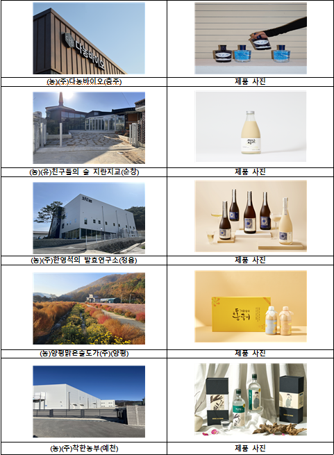 농림축산식품부(장관 송미령, 이하 농식품부)와 한국농수산식품유통공사(사장 홍문표, 이하 aT)는 2026년도 찾아가는 양조장에 충북 충주시 다농바이오, 전북 순창군 친구들의 술 지란지교와 정읍시 한영석의 발효 연구소, 경기도 양평군 양평맑은술도가, 경북 예천군 착한농부 5개소를 신규 선정했다고 22일 밝혔다.