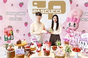 [푸드투데이 = 조성윤기자] 서울 중구 파스쿠찌 센트로서울점에서 모델이 에스더버니 하트 모양 딸기 케이크와 음료를 들어 보이고 있다. 파스쿠찌는 에스더버니 협업을 기념해 센트로서울점과 센트로서면점을 핑크 무드의 비주얼 점포로 꾸몄다.