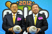팔도와 한국프로야구위원회(KBO)가 19일 오후 2시 서울 도곡동 야구회관 7층 기자실에서 2012년 프로야구 타이틀스폰서 조인식을 열었다.이날 조인식에서 최재문 팔도 대표이사(사진 왼쪽)와 구본능 KBO 총재(오른쪽)는 대형 싸인볼에 서명한 뒤 서로 나누어 가졌다.