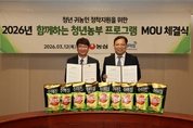 [푸드투데이 = 조성윤기자] 농심이 지난 12 일, 서울 동작구 농심 본사에서 농림축산식품부 산하 농림수산식품교육문화정보원과 2026 년 ‘함께하는 청년농부’ 프로그램 MOU 체결식을 가졌다. ‘함께하는 청년농부’ 프로그램은 농심이 귀농 청년의 안정적인 정착과 영농 활동을 돕기 위해 농정원과 2021 년 국내 식품업계 최초로 시작한 민관 협력 사회공헌 사업으로, 올해 6 년 차를 맞았다. 농심은 올해도 청년농부 10 명을 선정해 감자 농사 시작부터 수확물 판매까지 전 과정을 지원한다. 농사 시작 전 선급금을 지급해 안정적인 영농 여건을 제공하고, 우수 생산자와 청년농부를 멘토- 멘티로 연결해 씨감자 보관 및 관리 방법 교육, 파종 시기 현장 지원 등 노하우를 전수한다. 특히, 농심은 청년농부들이 판로 걱정 없이 감자 재배에만 온전히 집중할 수 있도록 올해 이들이 생산한 감자를 전량 구매한다는 방침이다. 실제로 농심의 청년농부 감자 구매량은 2022 년 132 톤에서 지난해 583 톤으로 4 배 이상 가파르게 증가했다. 그동안 농심이 구매한 감자의 누적 구매량은 총 1,793 톤에 달하며, 이는 수미칩, 포테토칩 등 농심의 대표 감자 스낵 생산에 활용됐다. 농