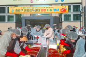 [푸드투데이 = 노태영기자] 18일 충북 괴산군(군수 송인헌)는 서울 중랑구청 일원에서 괴산-중랑 도농상생 김장나눔 행사를 개최했다고 밝혔다. 이번 행사는 군먹거리통합지원센터, 서울 중랑구 공공급식센터, 중랑구어린이집연합회 소속 원장 등 100여 명이 참여한 가운데, 도시와 농촌 간의 먹거리 연대 및 상호 교류를 강화하고 건강한 지역 먹거리 순환체계 실현을 위해 이른 아침부터 진행됐으며, 참가자들은 괴산에서 생산된 신선한 지역 농산물을 활용해 김장김치를 함께 담갔으며, 완성된 김치(10kg 100박스)는 중랑구 내 어린이 취약계층에게 전달된다.